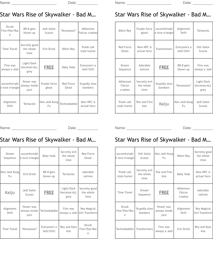 Star Wars Rise Of Skywalker Bad Movie Bingo Wordmint - In the prequel trilogy's second film, set about 10 years after the events of the phantom menace, anakin skywalker (hayden christensen).